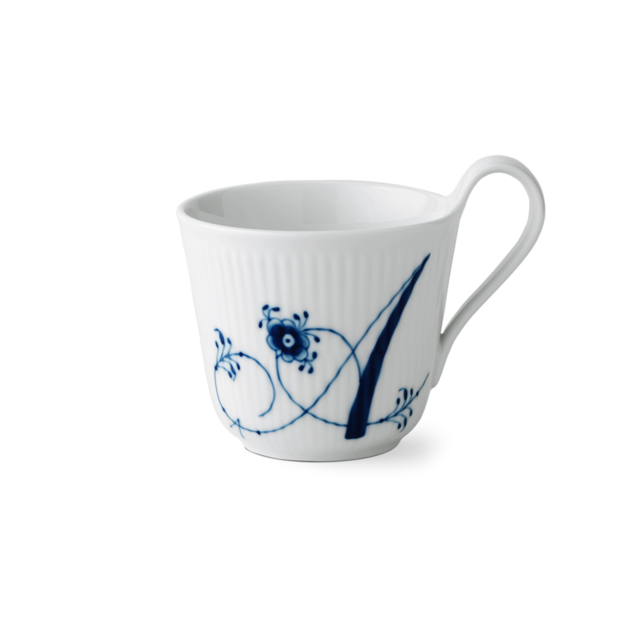 Эта изысканная чашка с высокой ручкой украшена элегантными белыми каннелюрами, поверх которых написана буква "А", изображенная стеблями цветов, нарисованных вручную пальметтами и маленькой хризантемой. Чашка объемом 330 мл идеально подходит как для чая, так и для кофе.