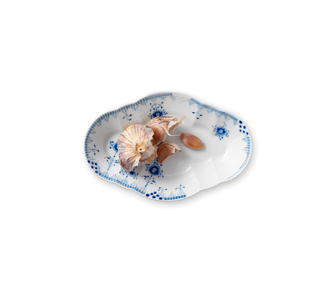 • Каймой из голубого кружева и зазубренными краями, взятыми у царского сервиза Флора Даника.