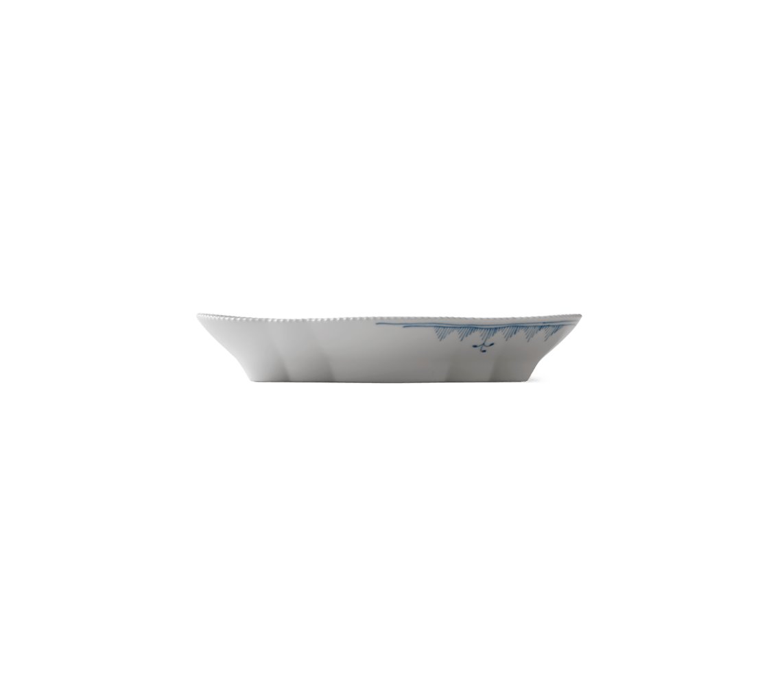 Наличие голубого орнамента еще больше роднит коллекцию со знаменитым домом фарфора, так как именно такая цветовая гамма и рифленые волны были использованы в самом первом сервизе Royal Copenhagen.