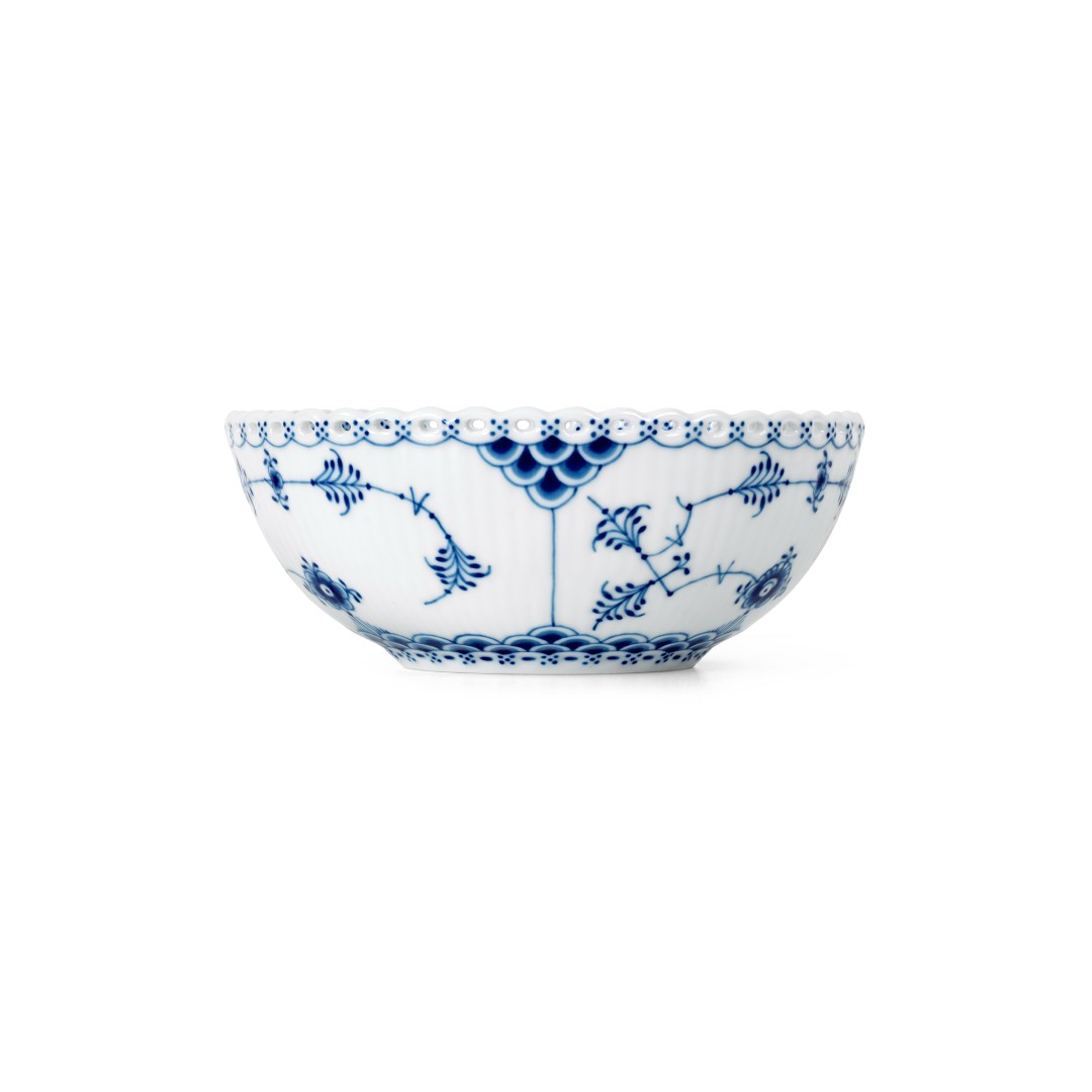 Столовый сервиз из старейшей «рифленой» серии королевского фарфора. Одна из самых первых коллекций мануфактуры, созданная в 1775 году, и спустя 110 лет модернизированная художественным руководителем Арнольдом Крогом. Принципиальные отличия коллекции Blue Fluted Full Lace: