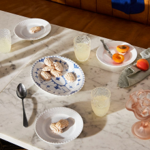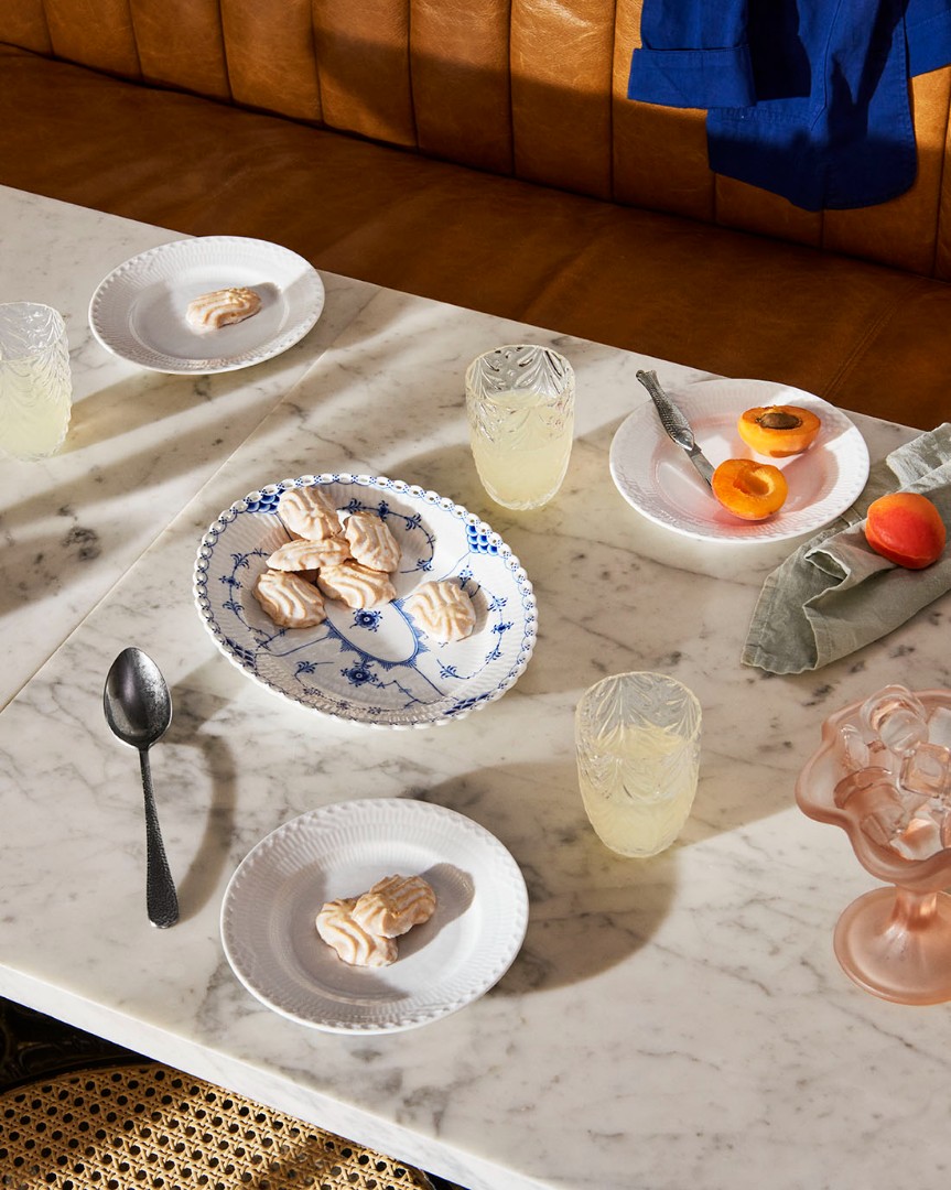 Столовый сервиз из старейшей «рифленой» серии королевского фарфора. Одна из самых первых коллекций мануфактуры, созданная в 1775 году, и спустя 110 лет модернизированная художественным руководителем Арнольдом Крогом. Принципиальные отличия коллекции Blue Fluted Full Lace:
