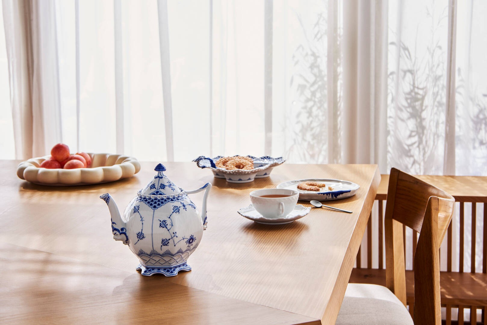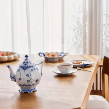 Созданный в 1885 году, чайный сервиз "Blue Fluted Full Lace" является образцом высочайшего мастерства художников Royal Copenhagen. Этот чайник восхищает изысканным кружевным декором, изящной раковиной улитки на крышке и масками "барокко" у основания носика и ручки. Идеален как для ценителей красивой чайной церемонии, так и для коллекционеров фарфора. Коллекция Blue Fluted Full Lace представляет собой высшее достижение ручной росписи по фарфору. Ажурный кружевной край коллекции создан с особым вниманием к деталям: каждое отверстие аккуратно сделано вручную, а затем вручную расписано классическим узором из цветов и тонких линий.