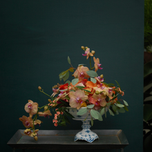 Изделие данной коллекции – легкое, выполненное в классическом стиле, но с элементами едва зародившегося модернизма. Тончайший белый фарфор богато декорирован тонкими веточками и цветами, симметрично расставленными на поверхности. Природную тематику продолжают раковины улиток на крышечках и ручках. Кружева, окаймляющие каждый предмет сервиза, делают его еще более нарядным.