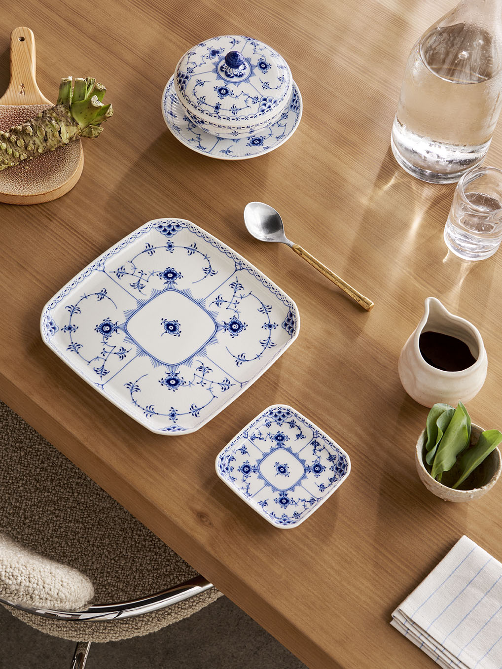 Миска с крышкой и блюдцем Blue Fluted Half Lace является наглядным примером того, как художники Royal Copenhagen используют историческое наследие фабрики в качестве ориентира для создания новых прекрасных изделий. Дополненная крышкой и классическим декором 1888 года, эта миска идеально подходит для индивидуальных порций супа или в качестве шкатулки.
