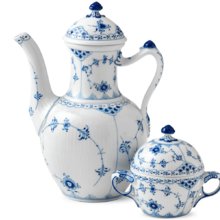 Одна из первых работ художника Арнольда Крога. Лаконичная и одна из самых нарядных «рифленых» серий, богато украшенная голубым орнаментом. Вышла в свет в 1888 году. Как и другие коллекции фарфора Royal Copenhagen конца 18 века, оформлена рисунком под названием «Узор номер 1», наложенным техникой ручной подглазурной росписи.