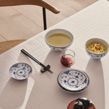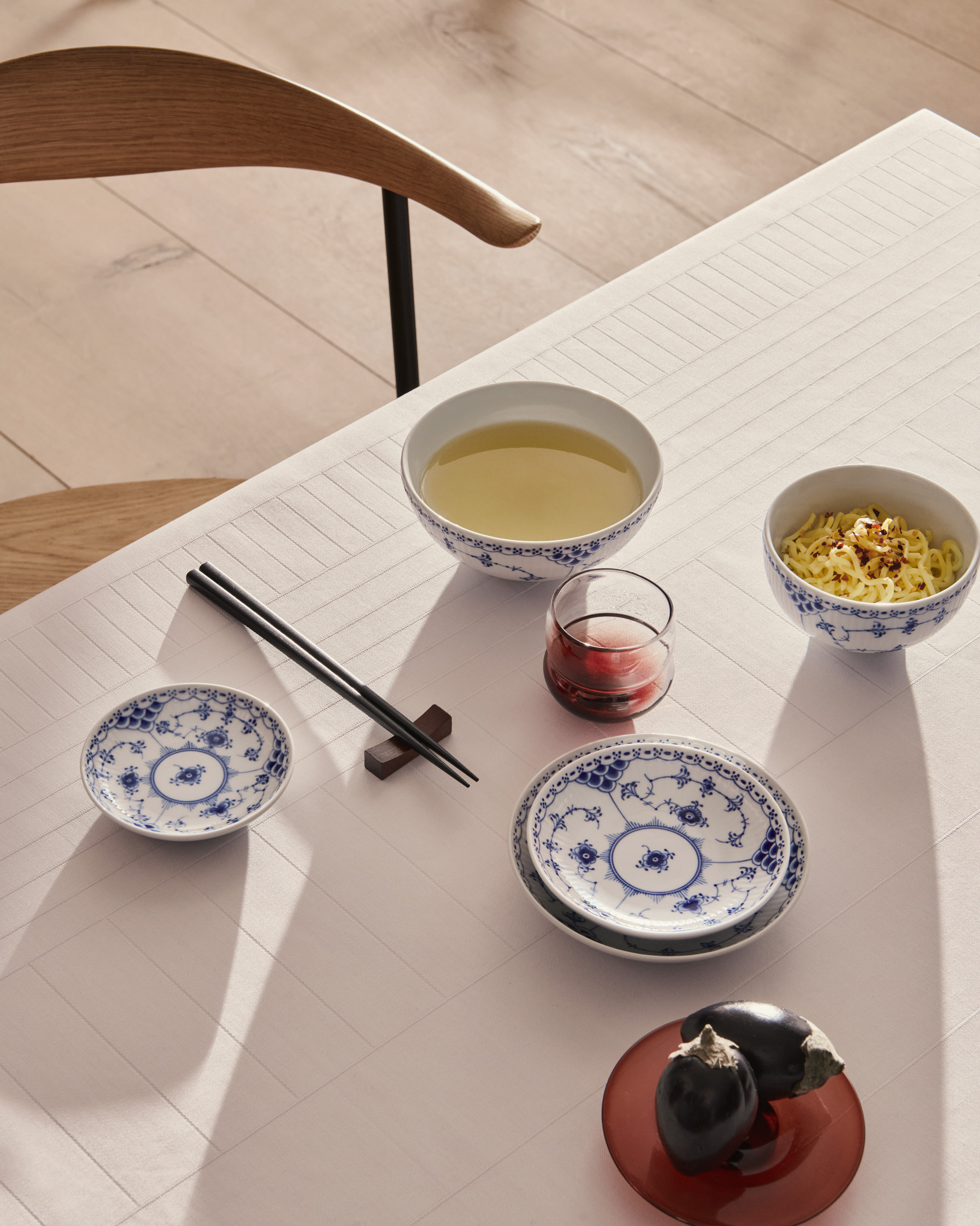 Одна из первых работ художника Арнольда Крога. Лаконичная и одна из самых нарядных «рифленых» серий, богато украшенная голубым орнаментом. Вышла в свет в 1888 году. Как и другие коллекции фарфора Royal Copenhagen конца 18 века, оформлена рисунком под названием «Узор номер 1», наложенным техникой ручной подглазурной росписи.