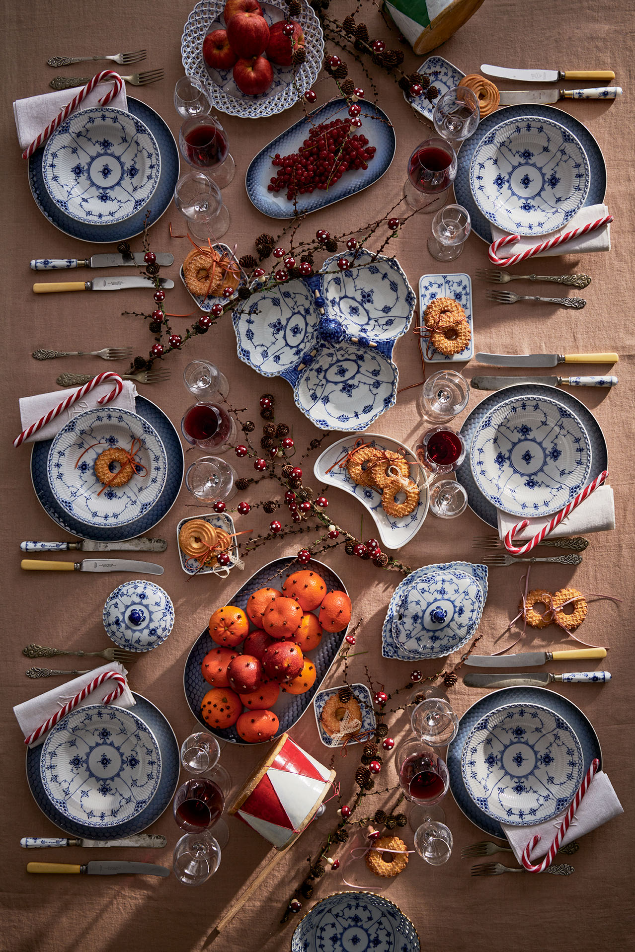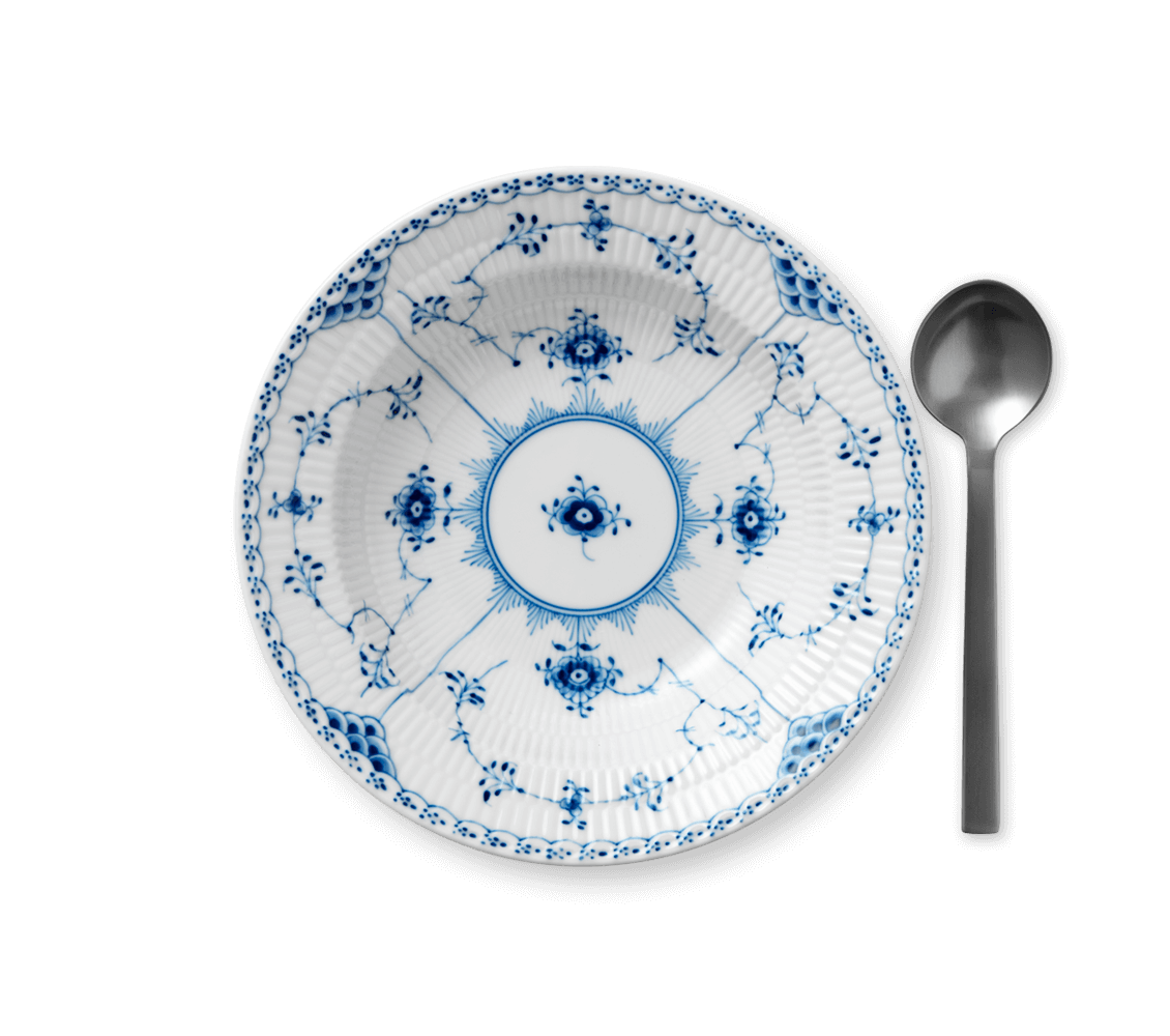 Одна из первых работ художника Арнольда Крога. Лаконичная и одна из самых нарядных «рифленых» серий, богато украшенная голубым орнаментом. Вышла в свет в 1888 году. Как и другие коллекции фарфора Royal Copenhagen конца 18 века, оформлена рисунком под названием «Узор номер 1», наложенным техникой ручной подглазурной росписи.