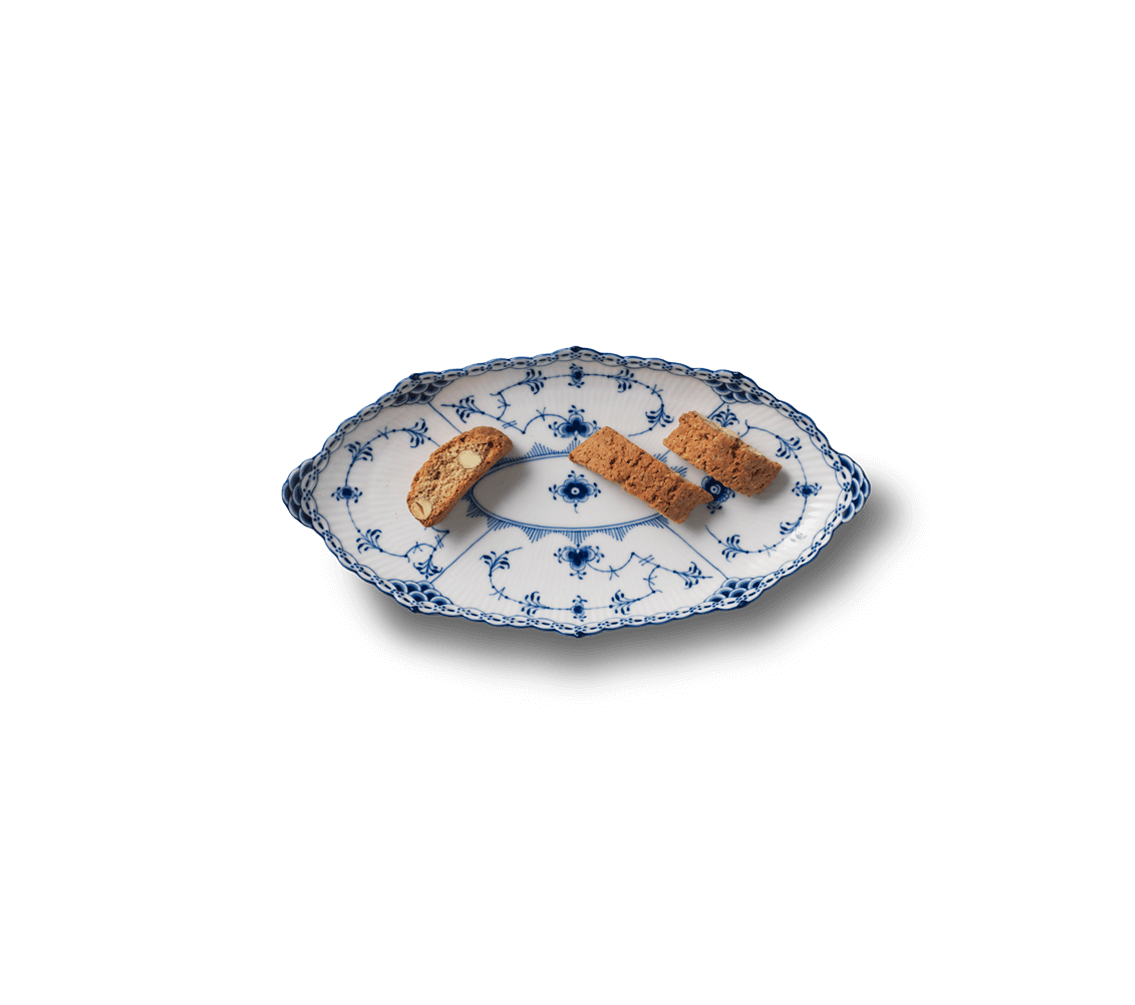 Одна из первых работ художника Арнольда Крога. Лаконичная и одна из самых нарядных «рифленых» серий, богато украшенная голубым орнаментом. Вышла в свет в 1888 году. Как и другие коллекции фарфора Royal Copenhagen конца 18 века, оформлена рисунком под названием «Узор номер 1», наложенным техникой ручной подглазурной росписи.