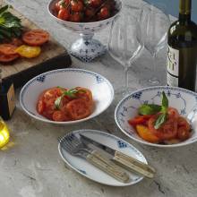 Современная форма глубокой тарелки теперь в коллекции Blue Fluted Half Lace. Эта тарелка универсальна и является элегантным предметом столового сервиза для подачи пасты, салатов или блюд азиатской кухни. Она также отлично подходит для подачи индивидуальных порций.