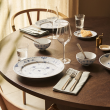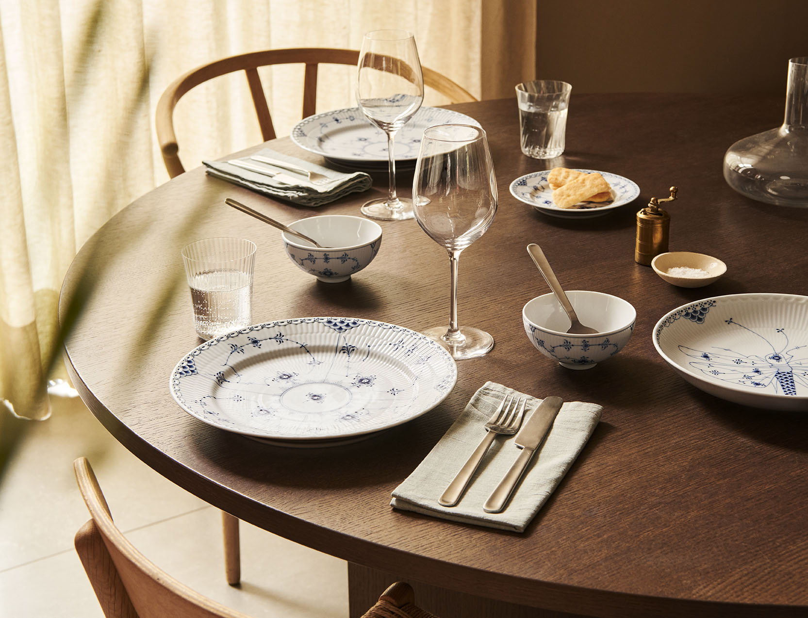 Одна из первых работ художника Арнольда Крога. Лаконичная и одна из самых нарядных «рифленых» серий, богато украшенная голубым орнаментом. Вышла в свет в 1888 году. Как и другие коллекции фарфора Royal Copenhagen конца 18 века, оформлена рисунком под названием «Узор номер 1», наложенным техникой ручной подглазурной росписи.