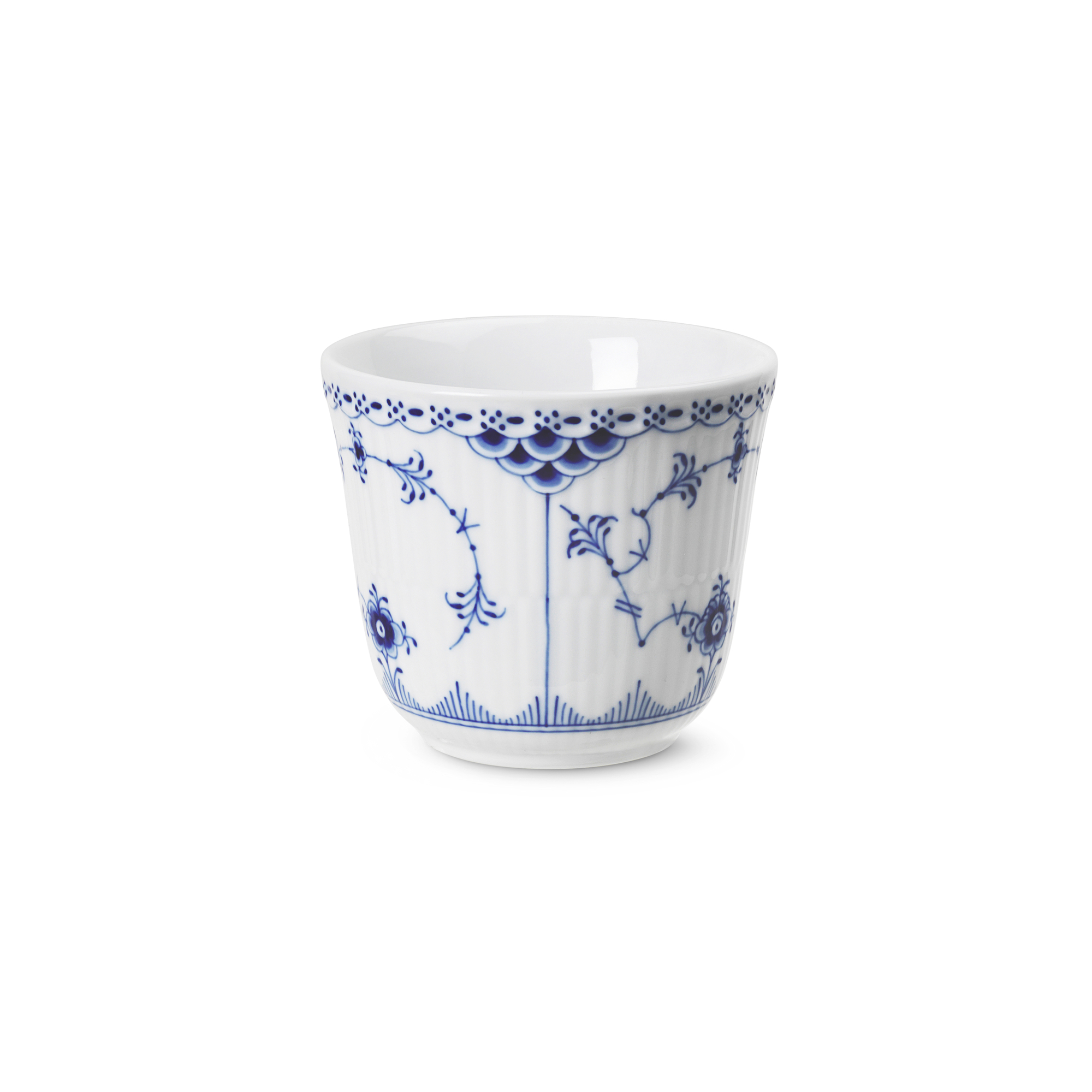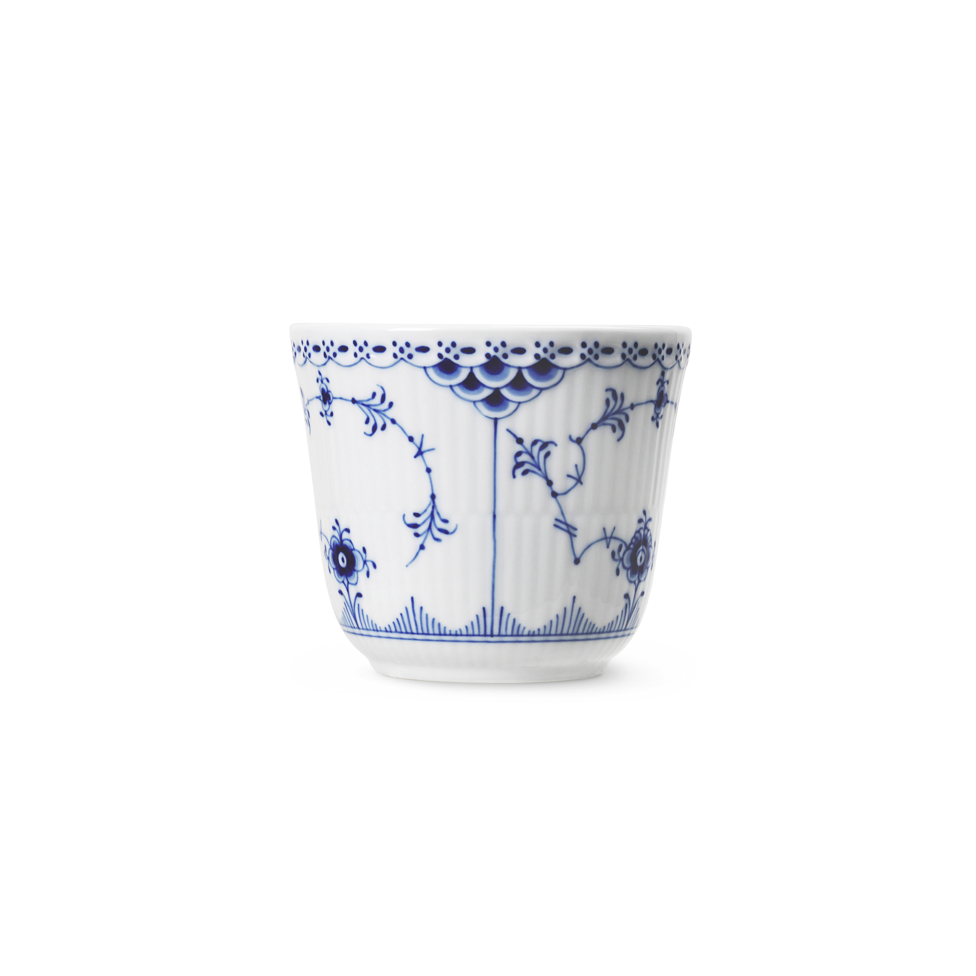Одна из первых работ художника Арнольда Крога. Лаконичная и одна из самых нарядных «рифленых» серий, богато украшенная голубым орнаментом. Вышла в свет в 1888 году. Как и другие коллекции фарфора Royal Copenhagen конца 18 века, оформлена рисунком под названием «Узор номер 1», наложенным техникой ручной подглазурной росписи.