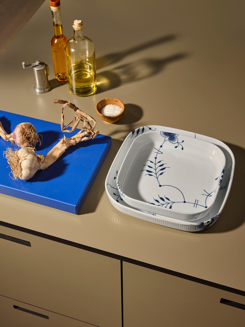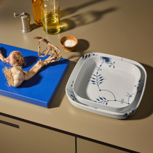 Квадратное жарочпрочное блюдо из новой линейки коллекции Blue Fluted Mega подойдет для запекания блюд в духовке и подачи их на стол.