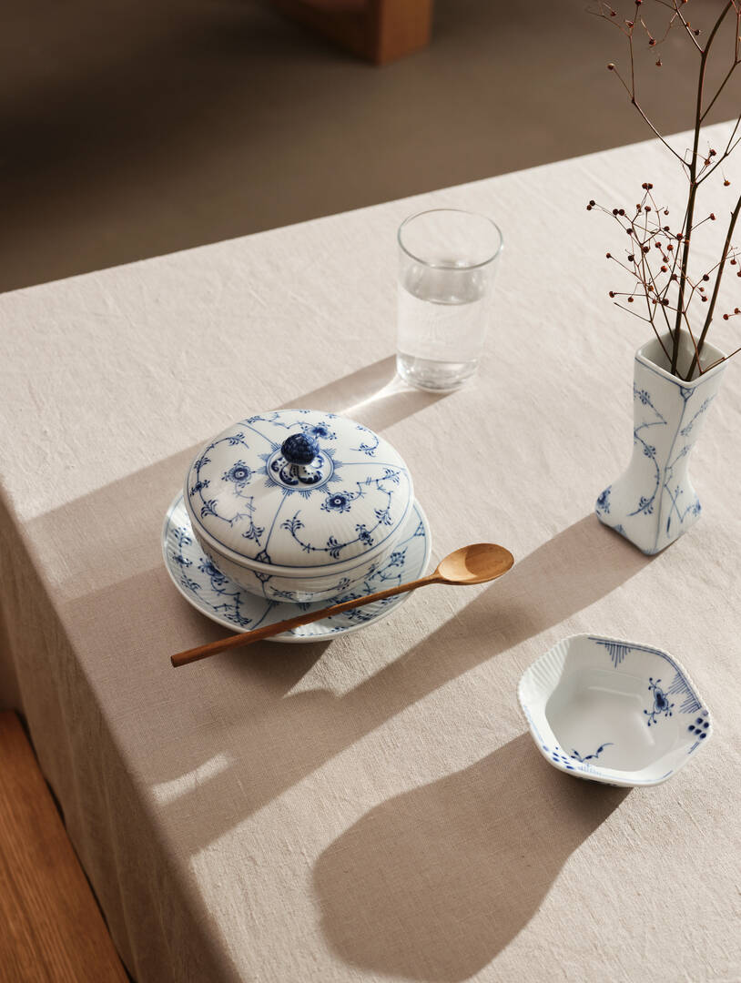 Одна из базовых коллекций датского фарфора, впоследствии многократно интерпретированная в других сериях. Создана в 1775 году, и в 1885-м переработанная архитектором и художественным руководителем Королевской мануфактуры, Анольдом Крогом.