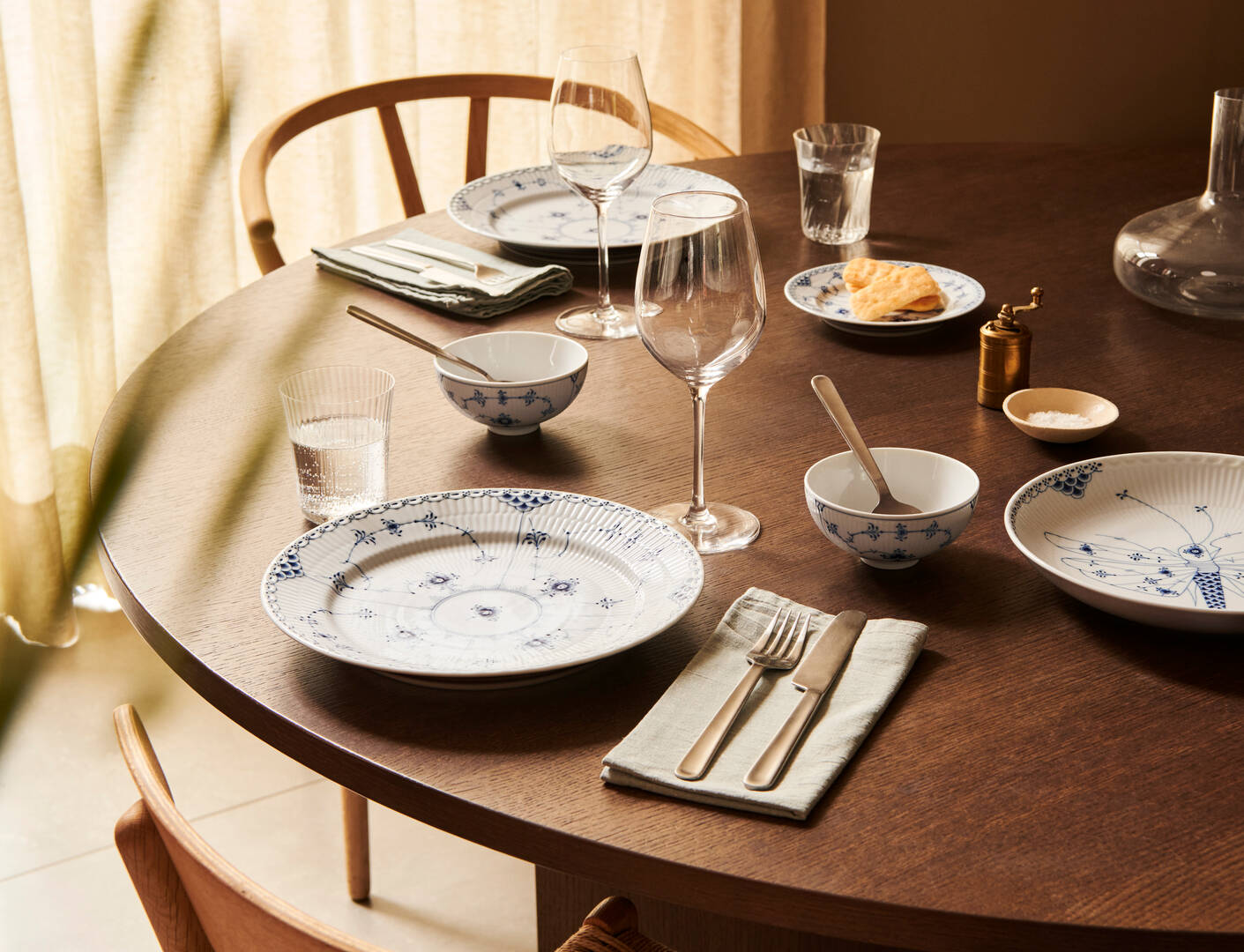 Одна из базовых коллекций датского фарфора, впоследствии многократно интерпретированная в других сериях. Создана в 1775 году, и в 1885-м переработанная архитектором и художественным руководителем Королевской мануфактуры, Анольдом Крогом.