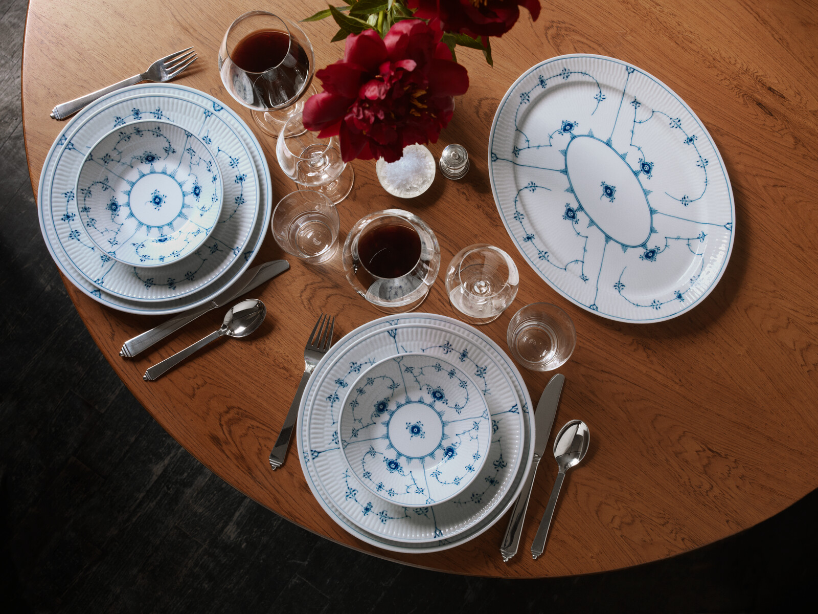 Одна из базовых коллекций датского фарфора, впоследствии многократно интерпретированная в других сериях. Создана в 1775 году, и в 1885-м переработанная архитектором и художественным руководителем Королевской мануфактуры, Анольдом Крогом.