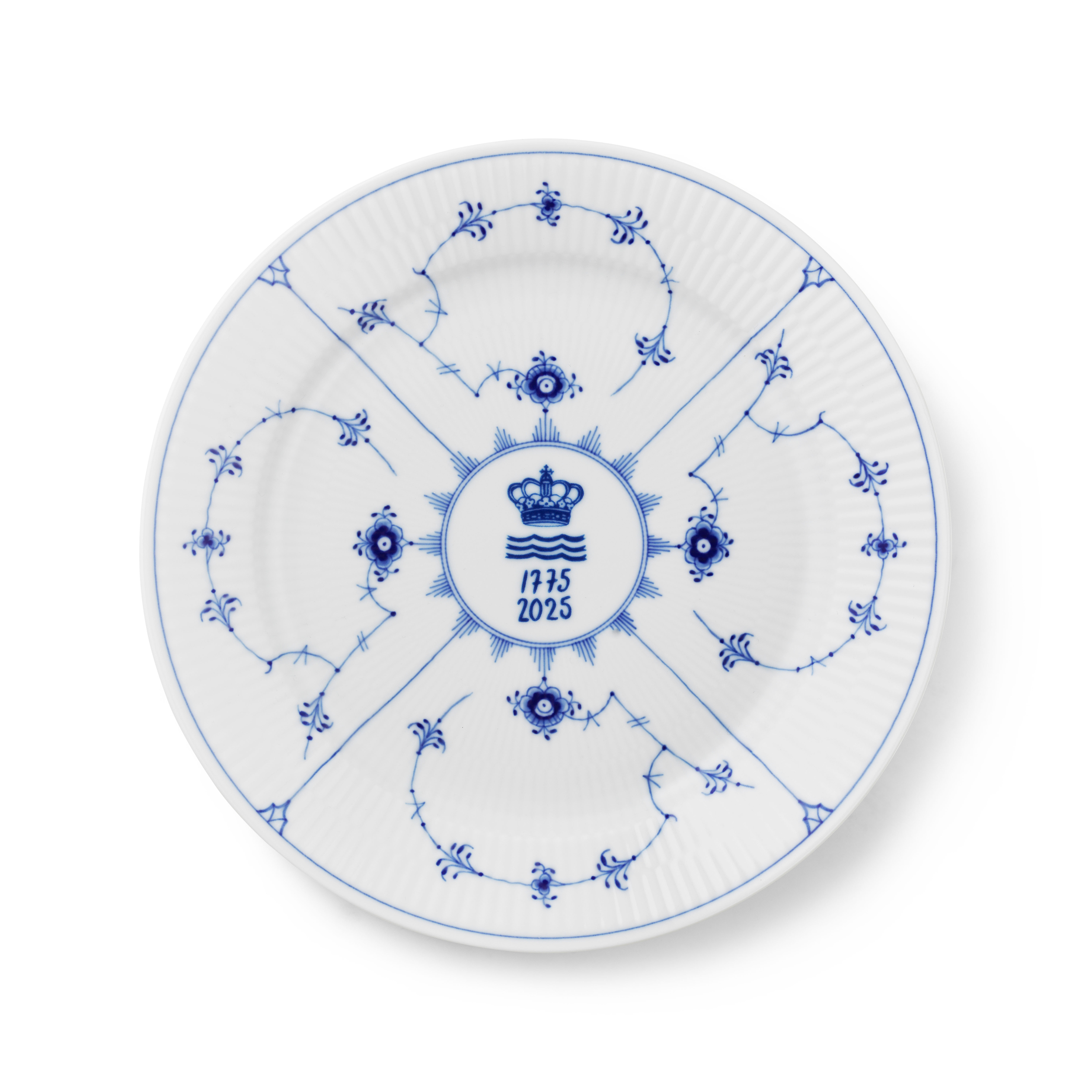 Узор № 1 – Blue Fluted Plain, который остается визитной карточкой бренда на протяжении многих лет. В честь этого знаменательного события классический мотив в центре тарелки был заменен элегантными юбилейными датами: 1775-2025.