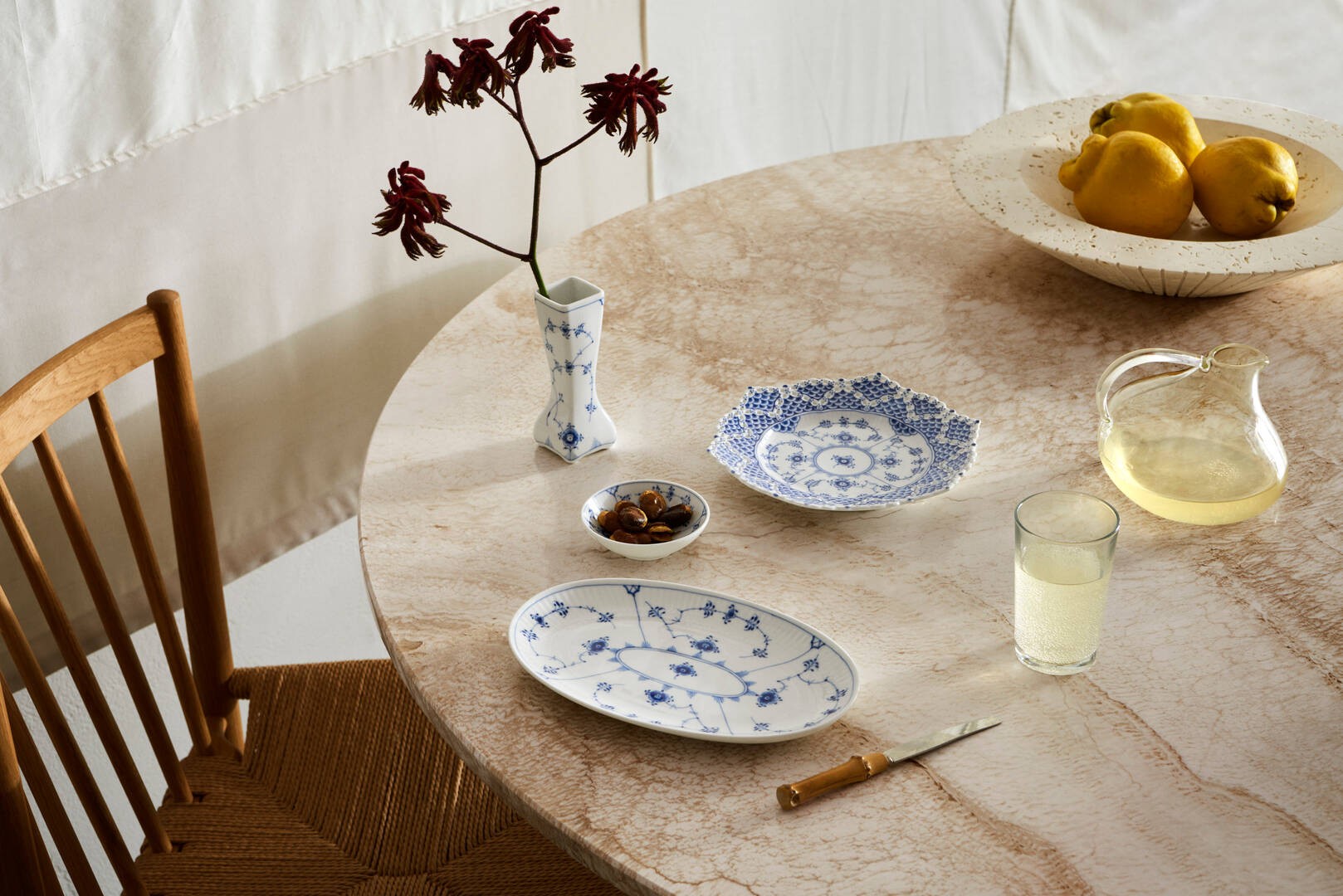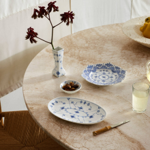 Одна из базовых коллекций датского фарфора, впоследствии многократно интерпретированная в других сериях. Создана в 1775 году, и в 1885-м переработанная архитектором и художественным руководителем Королевской мануфактуры, Анольдом Крогом.
