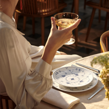 Blue Fluted Plain – белоснежный фарфор с легендарным «Узором №1», нанесенным техникой подглазурной росписи. Выполнен в классическом стиле, но отражает основные принципы модернизма, зарождавшегося в конце 18 века.