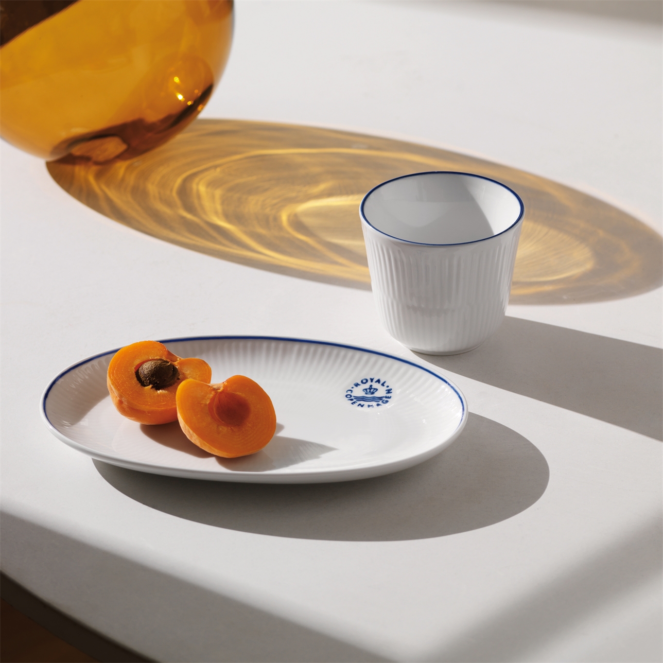 Blueline — это современный гимн скандинавскому минимализму. В центре внимания — безупречная белизна культовых каннелюр (желобков) Royal Copenhagen, подчеркнутая лишь одной тонкой синей линией, нанесенной вручную.