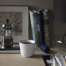 Термокружка из коллекции Blueline объемом сочетает в себе инновационную конструкцию и классическую эстетику датского фарфора. Главная особенность модели — двойные стенки, которые создают эффект термоса: ваш кофе или чай дольше остаются горячими, в то время как внешняя поверхность кружки не обжигает руки.