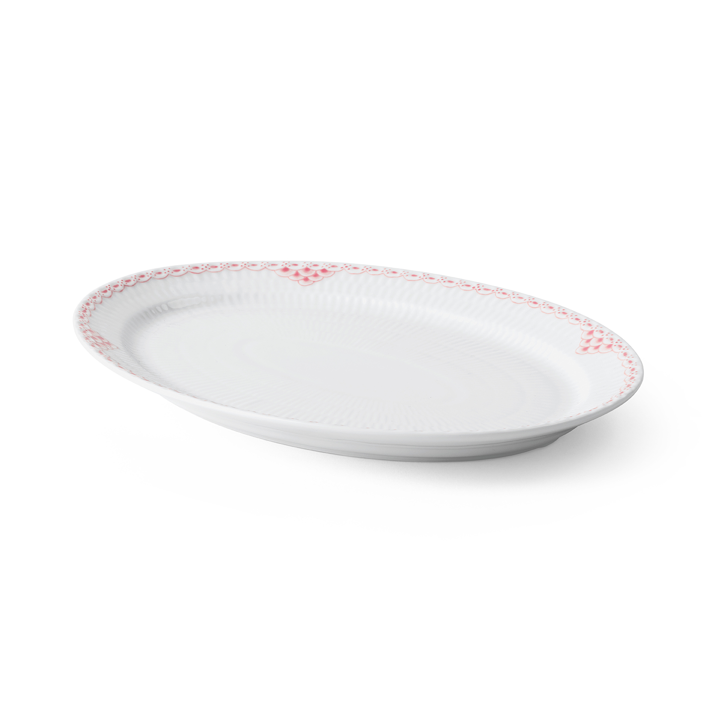Овальное блюдо Coral Lace – это сочетание элегантности и универсальности. Большое овальное блюдо прекрасно подойдет для подачи свежей выпечки, сладких фруктов или горячих блюд. Рифление в виде линий расходятся от центра блюда, достигая изысканного кружевного декора. Сочетайте с другими предметами коллекции Coral Lace для создания элегантного сервиза.