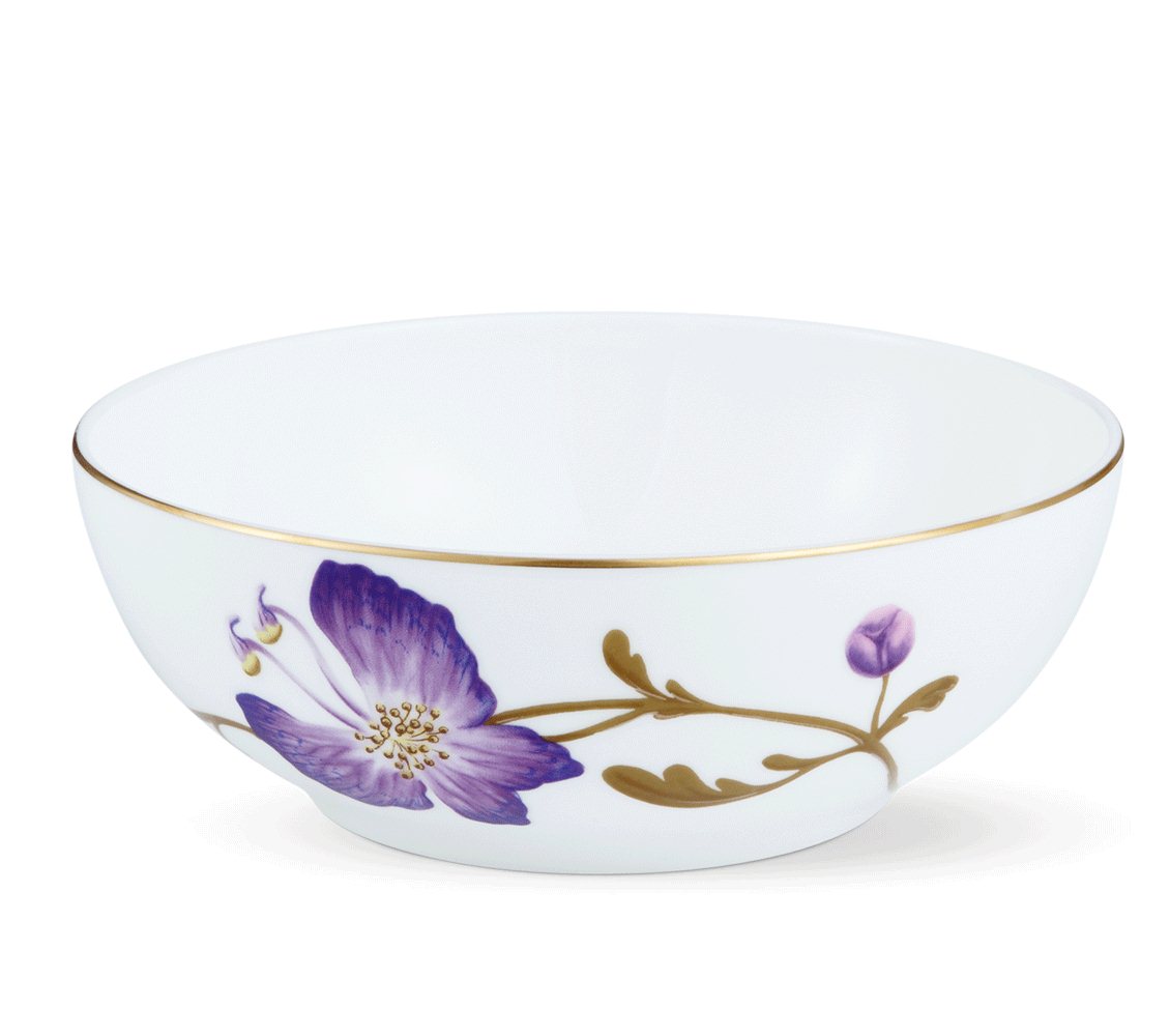 В основу декора легли яркие растительные сюжеты, центральным элементом которых является крупный цветок – лилия, фиалка, василек, орхидея и другие. Коллекция содержит все необходимое для сервировки обеденного или праздничного стола: чайные пары, мелкие и глубокие тарелки, миски, чайники, блюда разного размера и формы, другие элементы. Поверхность фарфоровых предметов ровная без рельефов.