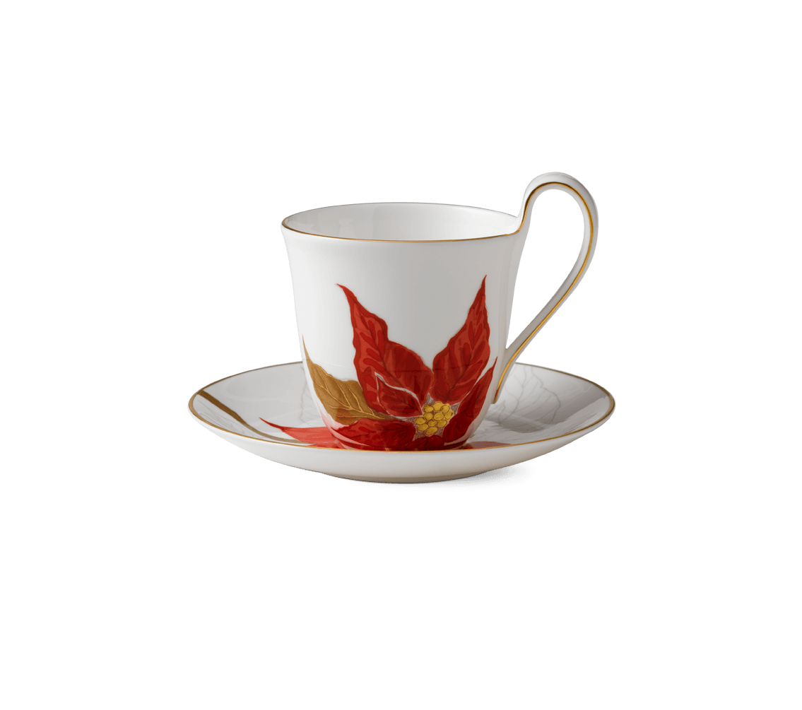 Встречайте праздничное настроение с чайной парой Poinsettia от Royal Copenhagen. Эта великолепная пара, состоящая из чашки и блюдца, посвящена символу Рождества — пуансеттии, или "рождественской звезде".