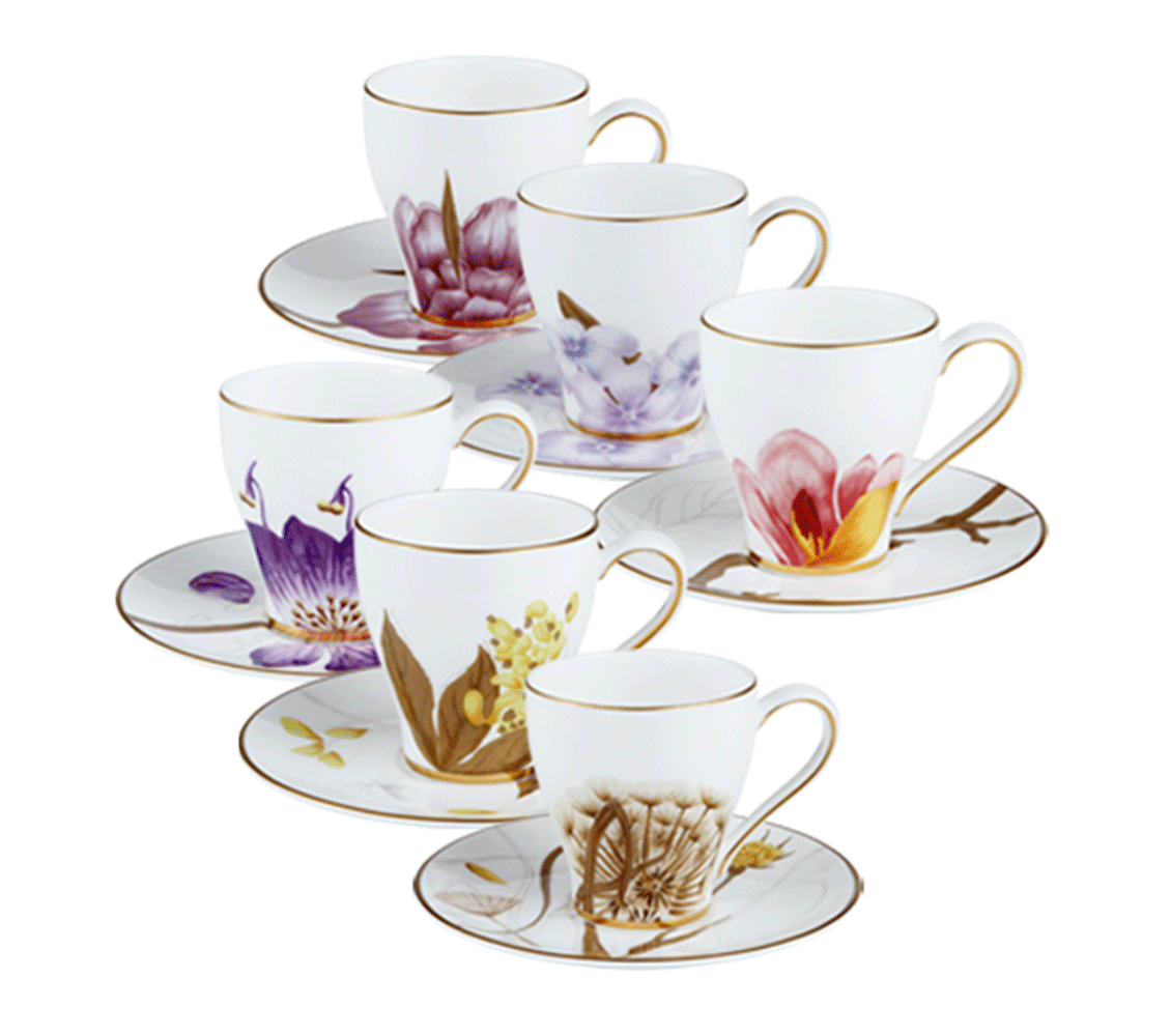 Представляем набор чашек для эспрессо из коллекции Flora — идеальное дополнение для истинных ценителей крепкого кофе. Этот набор, созданный с традиционным вниманием к деталям и качеству, воплощает в себе элегантность и функциональность.