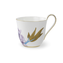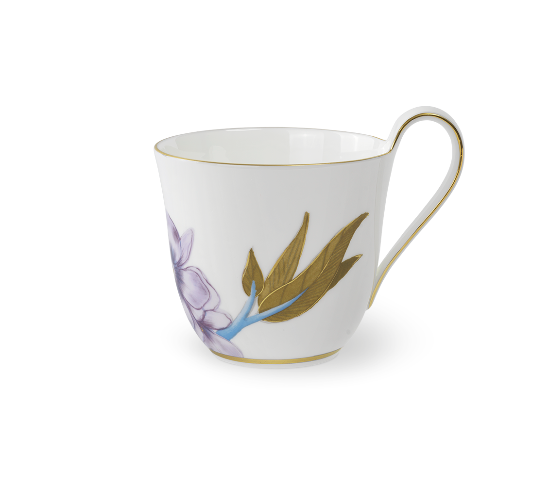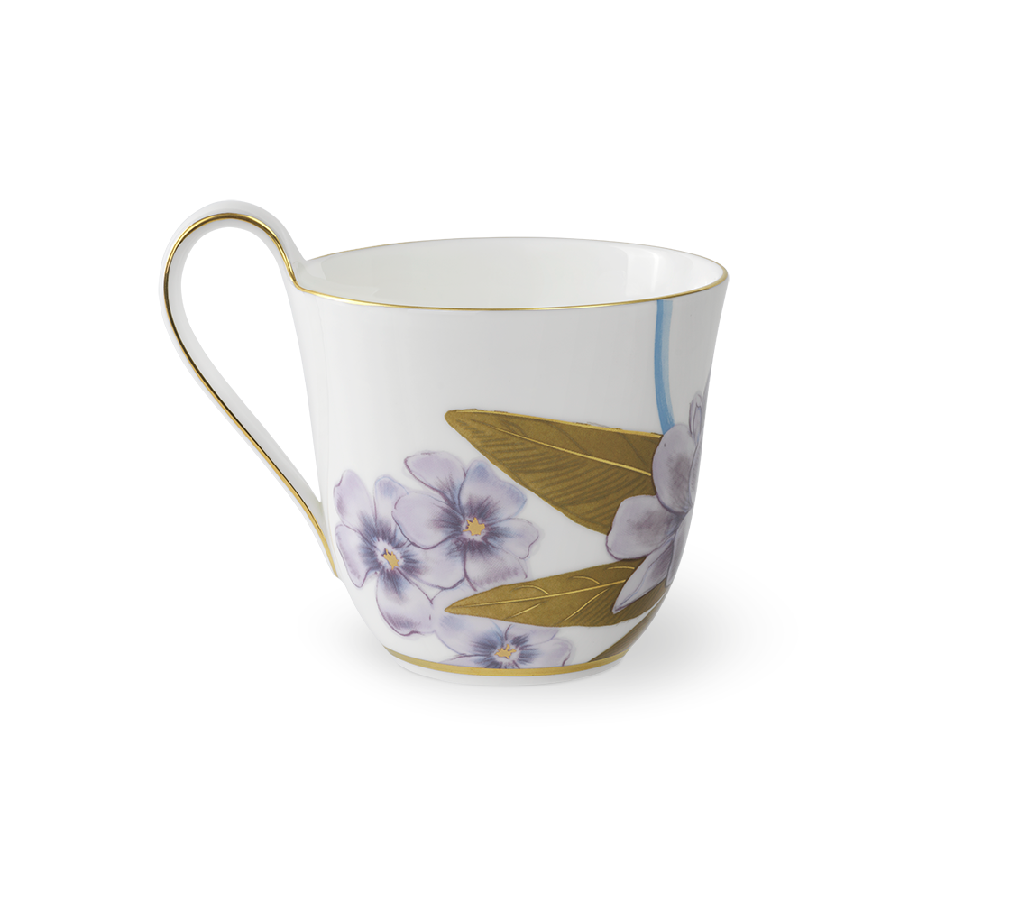 На этой чашке Flora с высокой ручкой блестящие листья и роскошные цветы рододендрона воспроизведены в мягких пурпурных тонах, создавая одновременно привлекательный и элегантный образ. Объем этой чашки составляет 330 мл. Комбинируйте ее с другими предметами из коллекции Flora, чтобы создать свой собственный, пышный цветочный сад на столе.