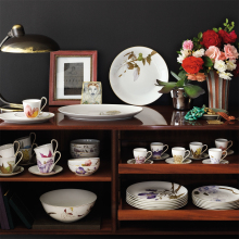 Изделия сделаны из костяного фарфора, что придает им легкость, слегка кремовый оттенок и прозрачность.