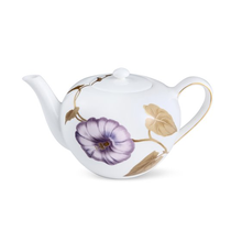 Заварочный чайник Flora украшен изящным вьюнком, который обвивает его своими пышными листьями и цветами глубоких пурпурных оттенков. С одной стороны чайника мастерство росписи проявляется в виде тонкого, легкого наброска, который создает прекрасный контраст с сочными, объемными цветами.