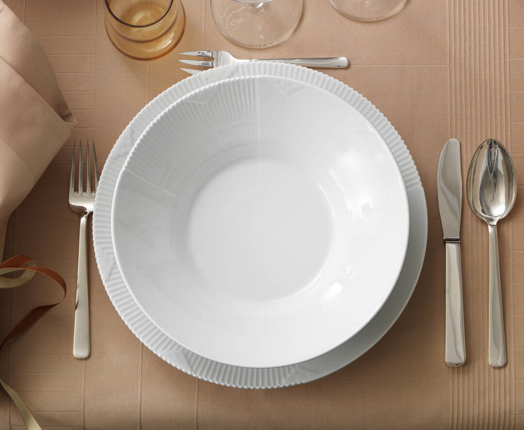При создании коллекции White Elements Louise Campbell воплотила в жизнь удивительное сочетание дизайнерских элементов из классических коллекций Royal Copenhagen. Это новый взгляд на традиции: коллекция включает в себя рифление из "Blue Fluted Plain", кружевную кайму из "Blue Fluted Half Lace" и зубчатый край из культовой "Flora Danica". Неожиданное использование классических элементов на белом фарфоре делает каждое изделие современным и совершенно уникальным.