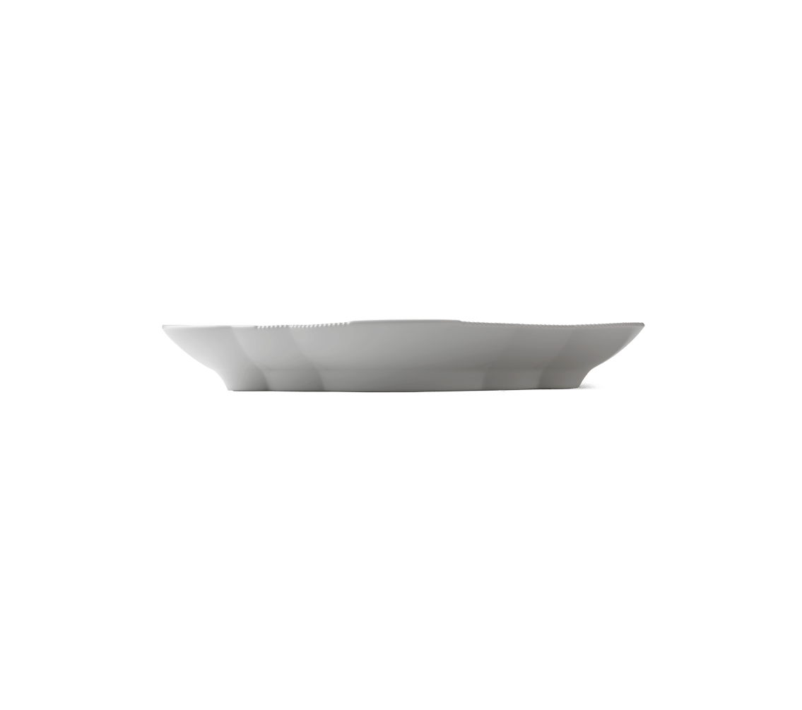 Блюдо Royal Copenhagen "White Elements» — это настоящий холст для ваших кулинарных шедевров, сочетающий в себе классическое мастерство и современный подход. Его чистый белый фарфор не только визуально притягателен, но и оживает благодаря искусно выполненным вручную рельефным деталям, придающим ему уникальную тактильность. Это блюдо выделяется своей необычной, слегка асимметричной или мягко изогнутой формой, которая добавляет динамики сервировке, делая каждый предмет на нем визуально более выразительным.