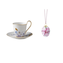 Подарочный набор из пасхального яйца с мотивом узора цветка "Иван-Чая" и чашки с блюдцем с мотивом Рододендрона из коллекции Flora.