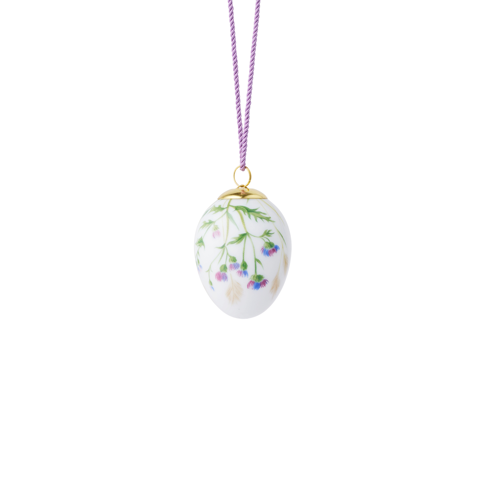 Детальное изображение цветка чертополоха на белоснежном фарфоре воспевает дикую и самобытную красоту весенней флоры. Подвесные яйца станут изысканным дополнением к пасхальному дереву из вербных ветвей или элегантным самостоятельным акцентом в интерьере.