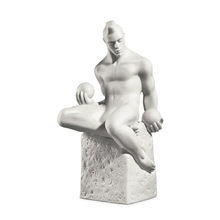 Статуэтка выполнена из белоснежного бисквитного фарфора. Отказ от глазури позволяет свету мягко обволакивать мускулатуру и пластичные линии тела, создавая эффект «живого» мрамора. Матовая, бархатистая поверхность делает объект визуально глубоким и тактильно приятным, превращая его в предмет высокого коллекционного искусства.