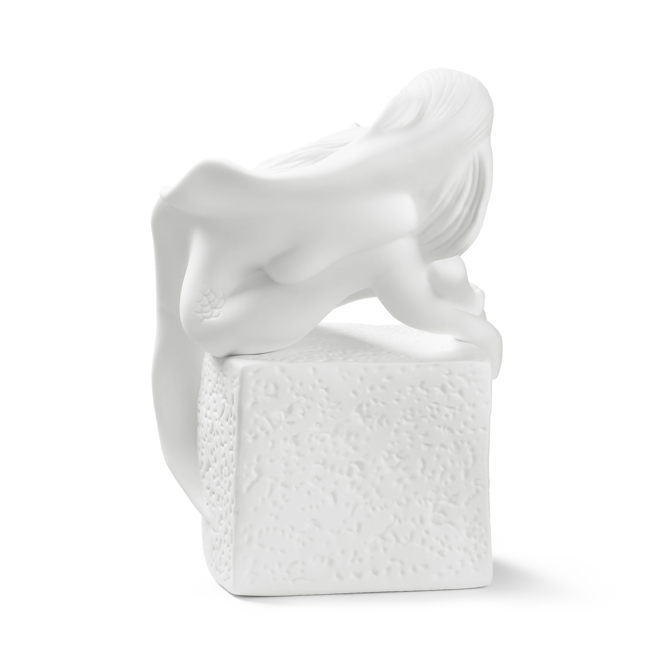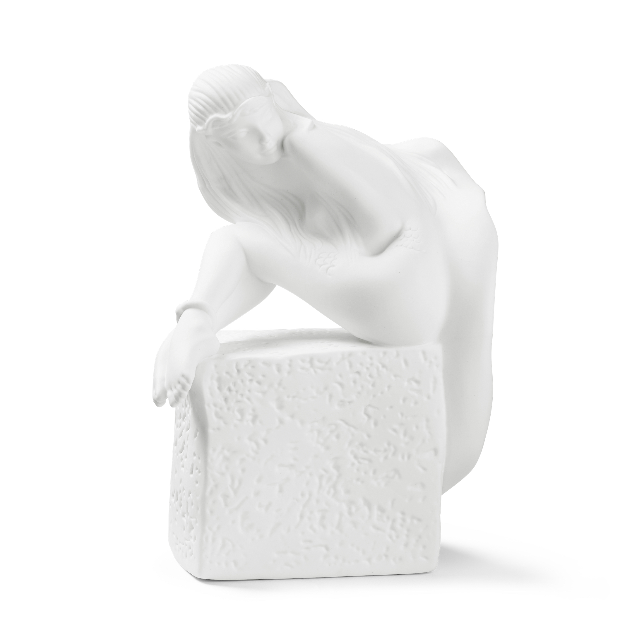 Фигурка выполнена из матового бисквитного фарфора. Его бархатистая текстура без лишних бликов акцентирует внимание на плавности линий и чистоте образа. Этот благородный материал делает статуэтку тактильно приятной и визуально статусной.