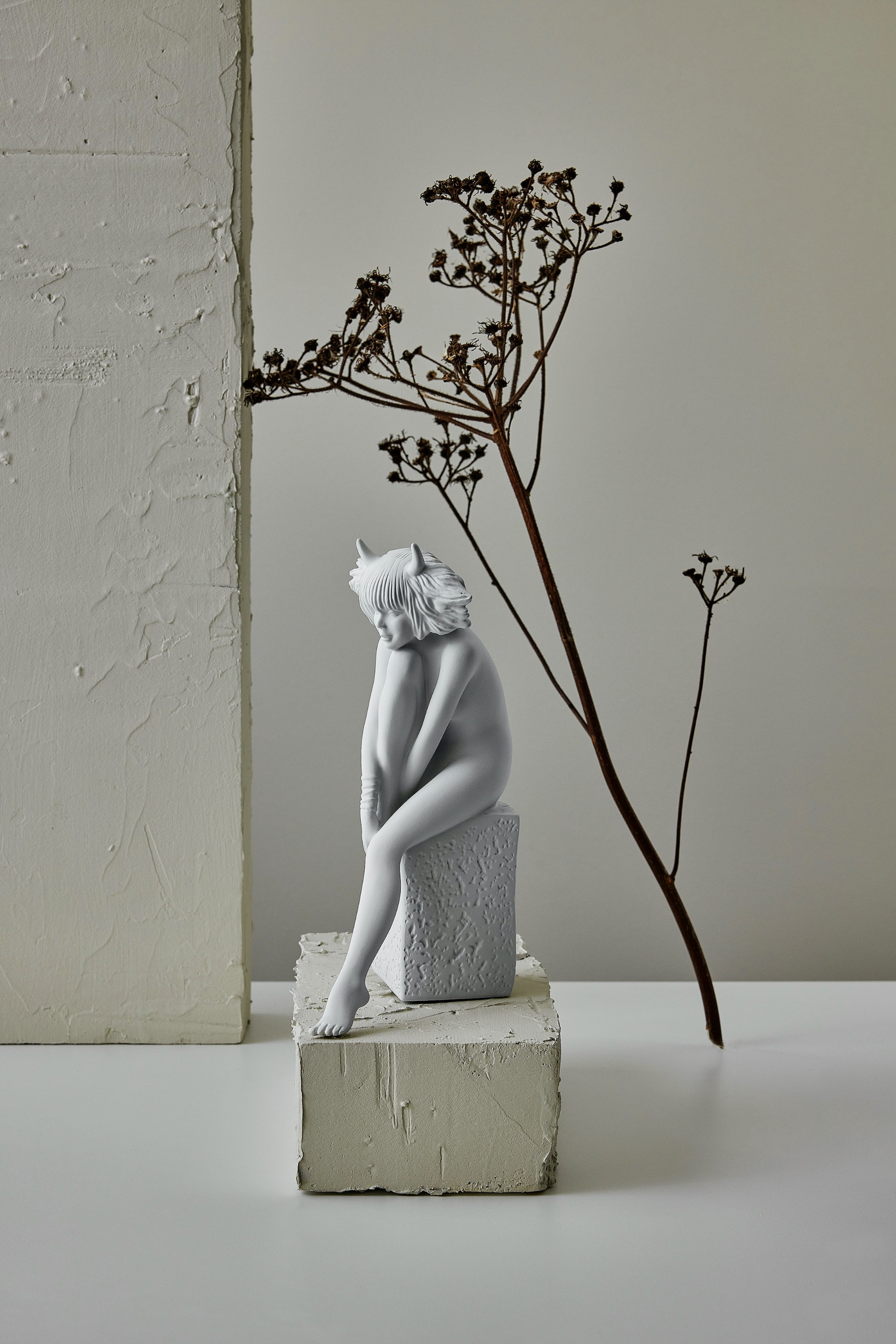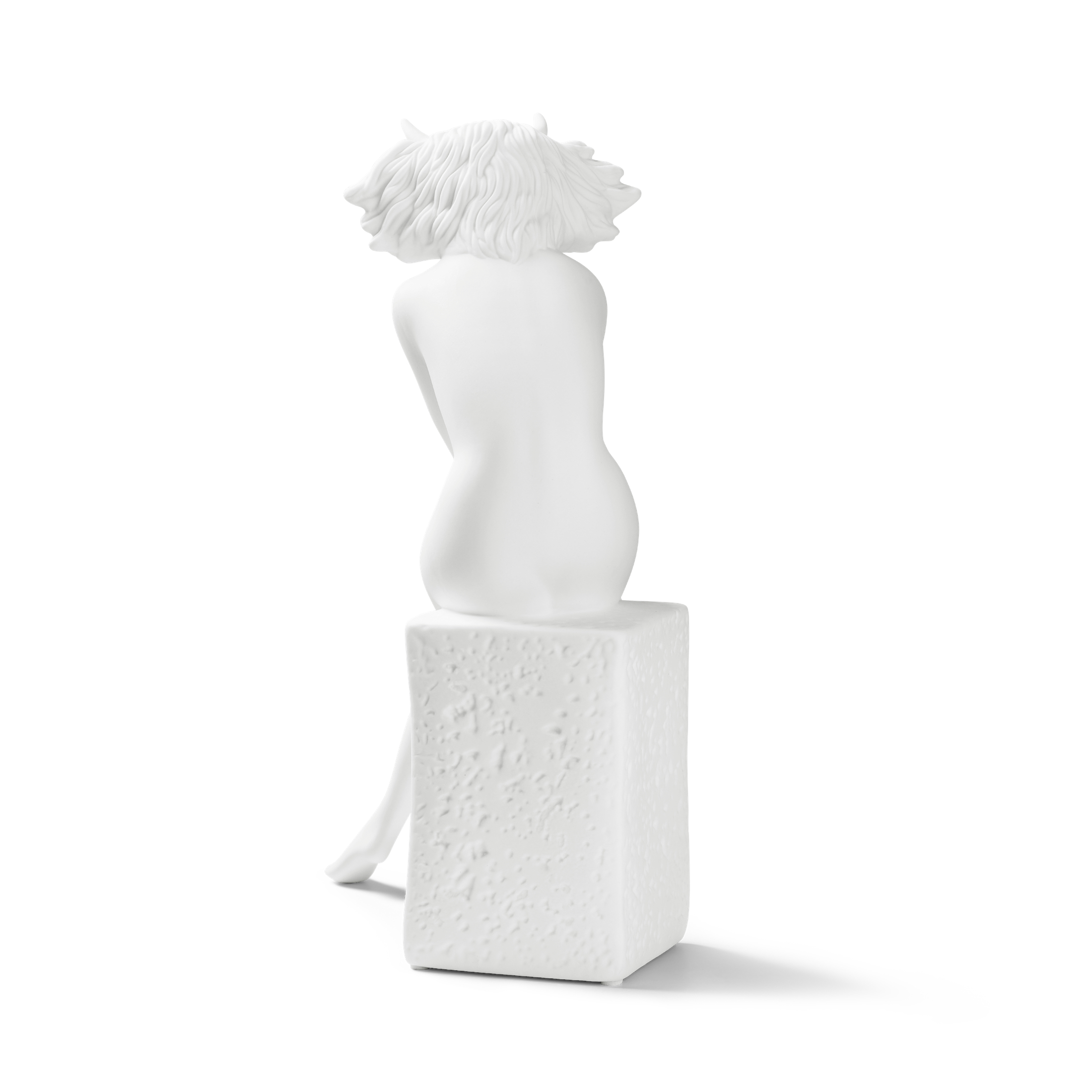 Изделие выполнено из матового бисквитного фарфора. Его бархатистая текстура без глазури мягко поглощает свет, подчеркивая чистоту скульптурных линий. Благородный белый материал делает статуэтку тактильно приятной и визуально статусной, превращая её в объект высокого дизайна.